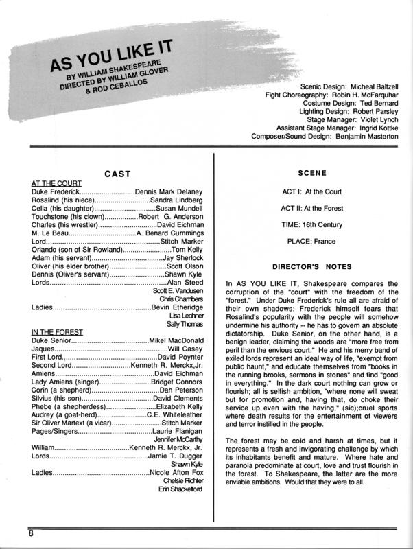 | Image name | <i>As You Like It</i>, Cast and Director's Notes |