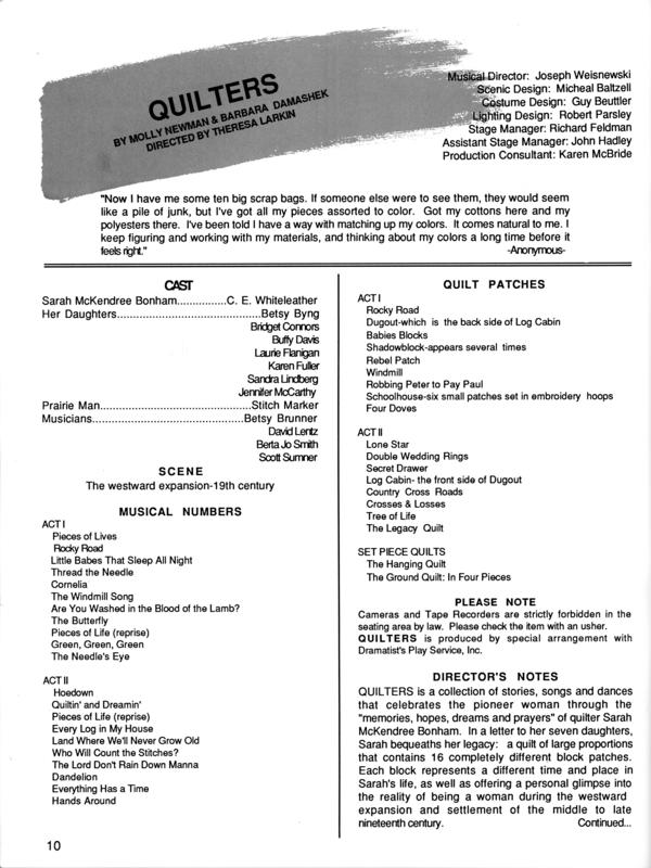 | Image name | <i>Quilters</i>, Cast and Director's Notes |