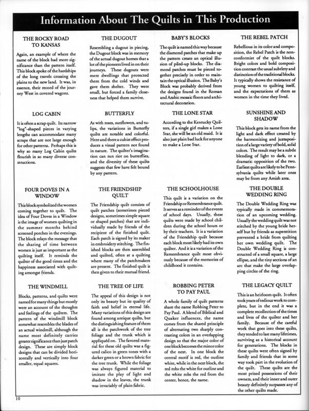 Image name | Information about the Quilts in This Production |