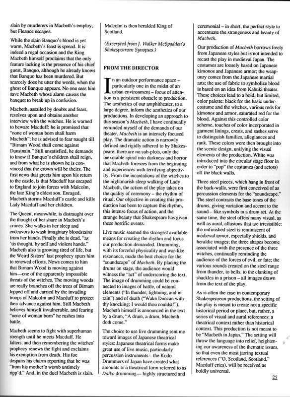 Image name<i>The Tragedy of Macbeth</i>, Director's Notes