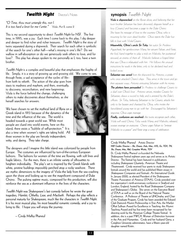 Image name | Twelfth Night -- Director's Notes and Synopsis |