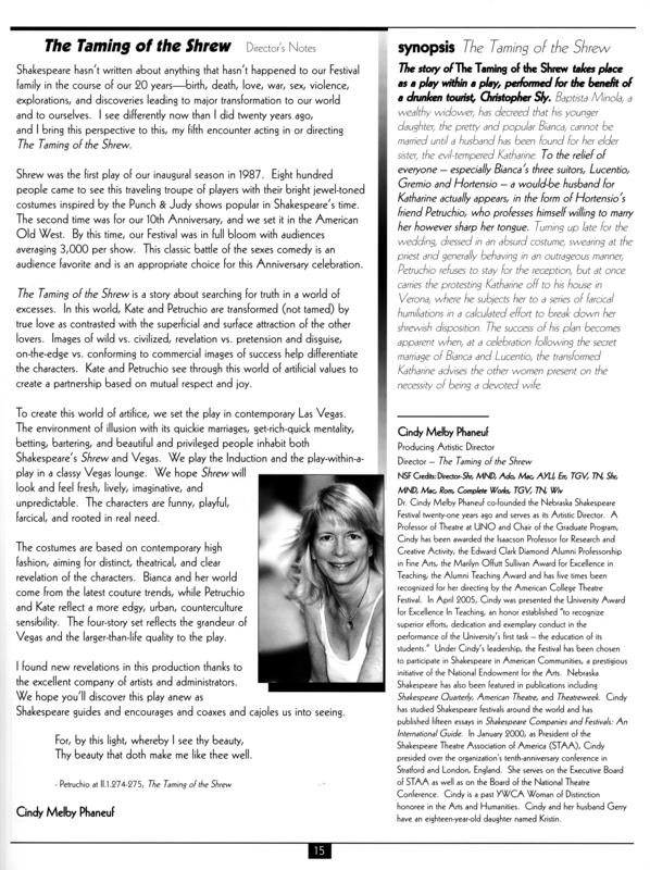Image nameThe Taming of the Shrew -- Director's Notes and Synopsis