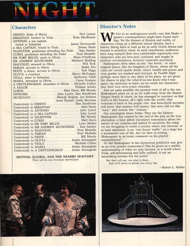 Image name | Twelfth Night -- Cast and Director's Notes |