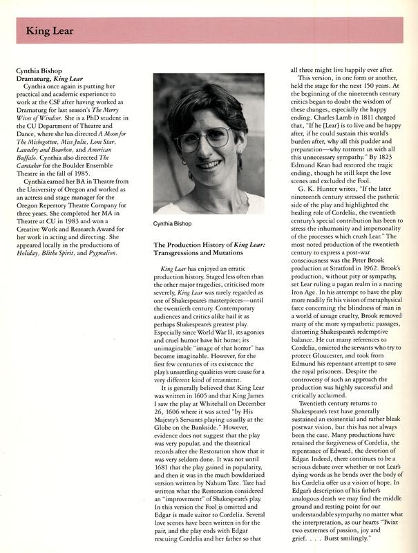 | Rights | Artifact © Colorado Shakespeare Festival [web site] |