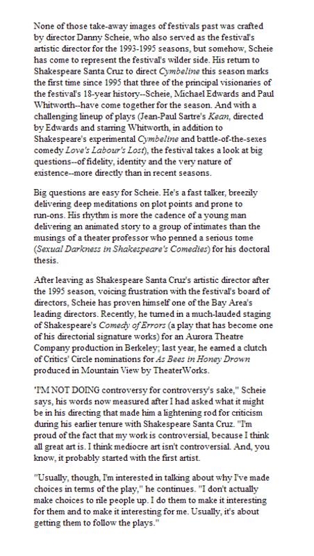 Review: "Bad Boy of The Bard" (Shakespeare Santa Cruz, 2000)