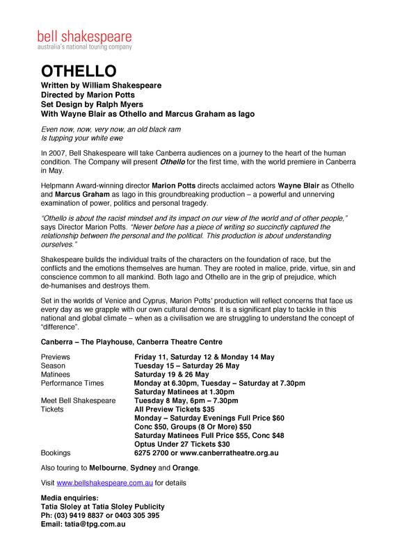 Rights | Artifact © The Bell Shakespeare Company [web site] |