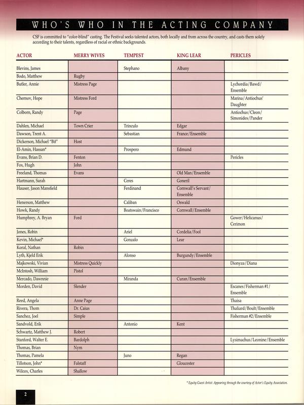 Rights | Artifact © Colorado Shakespeare Festival [web site] |