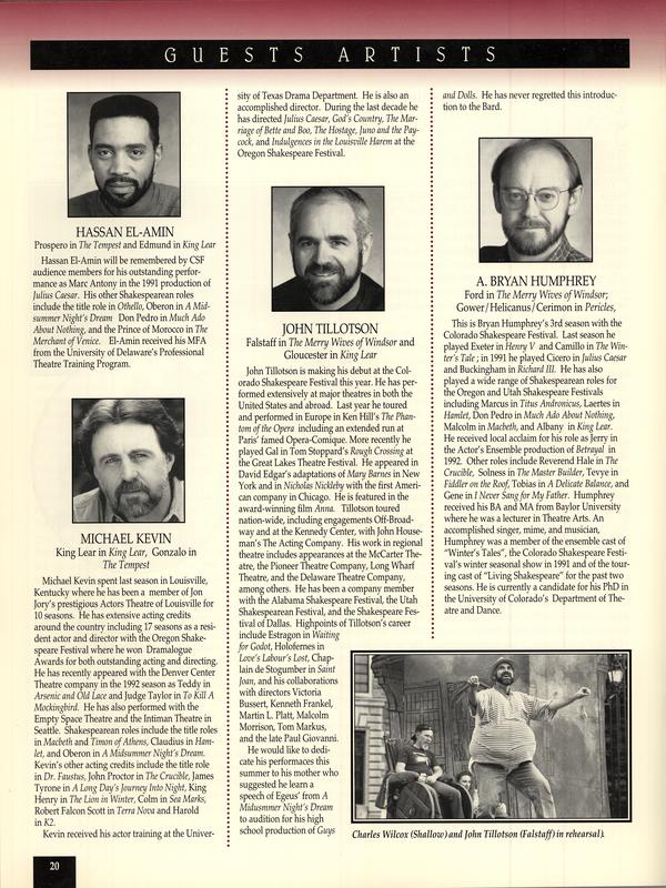 | Rights | Artifact © Colorado Shakespeare Festival [web site] |