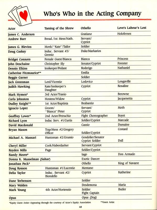 RightsArtifact © Colorado Shakespeare Festival [web site]