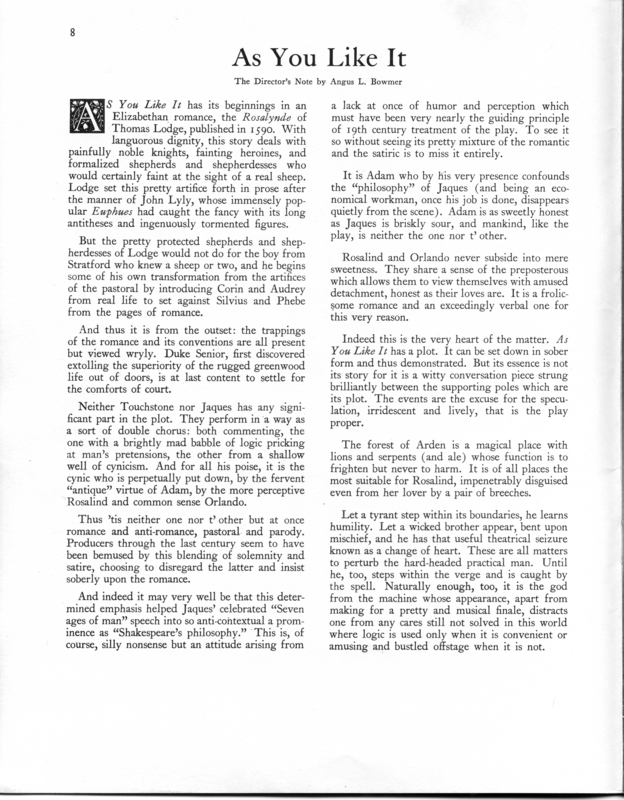 Description | Director's Note: As You Like It. |