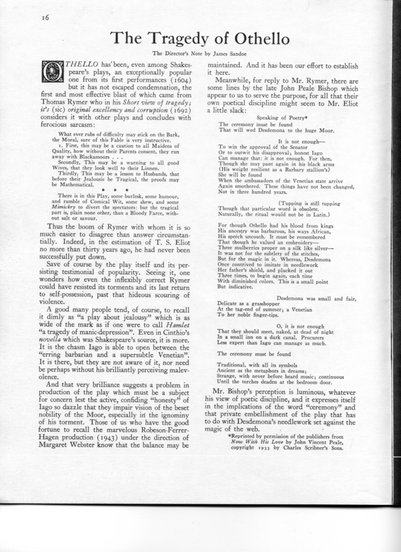 Image name<i>Othello</i>: Director's Notes