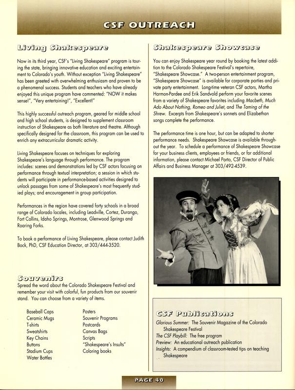 RightsArtifact © Colorado Shakespeare Festival [web site]