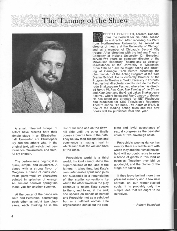 DescriptionDirector's Note: The Taming of the Shrew