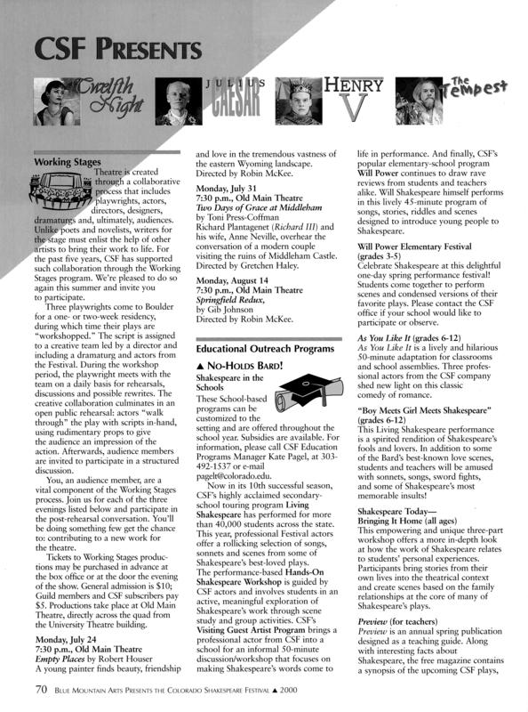 RightsArtifact © Colorado Shakespeare Festival [web site]