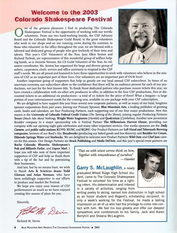 Image nameWelcome to the 2003 Colorado Shakespeare Festival