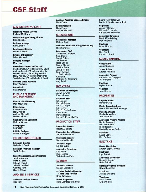 Rights | Artifact © Colorado Shakespeare Festival [web site] |