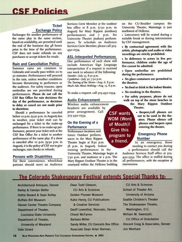 Rights | Artifact © Colorado Shakespeare Festival [web site] |