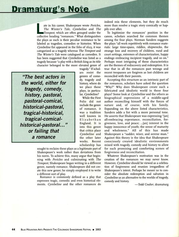 RightsArtifact © Colorado Shakespeare Festival [web site]