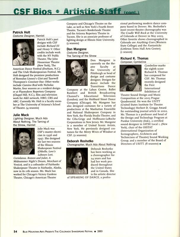 Rights | Artifact © Colorado Shakespeare Festival [web site] |
