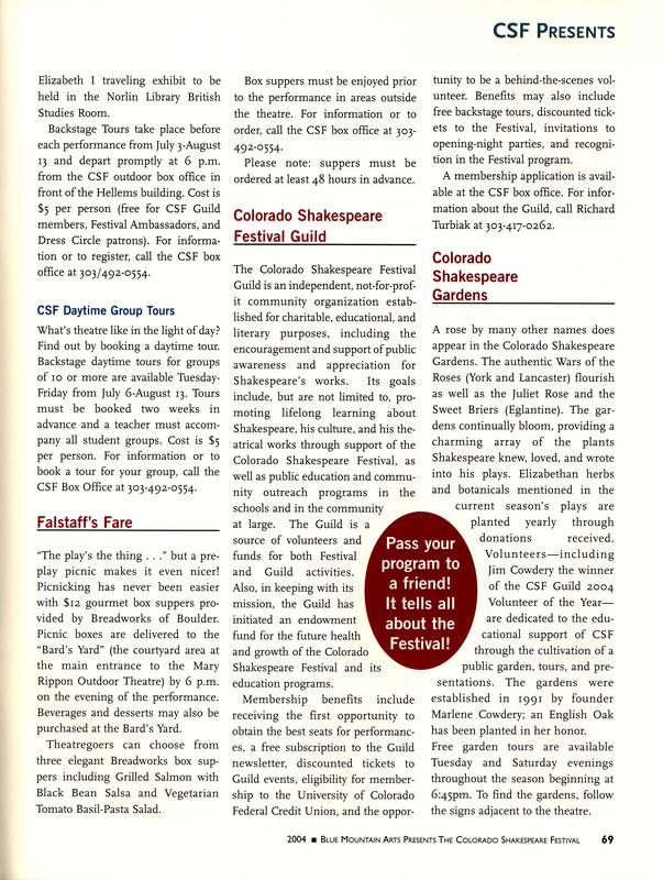 RightsArtifact © Colorado Shakespeare Festival [web site]