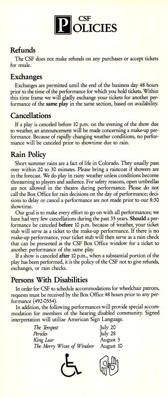 Rights | Artifact © Colorado Shakespeare Festival [web site] |