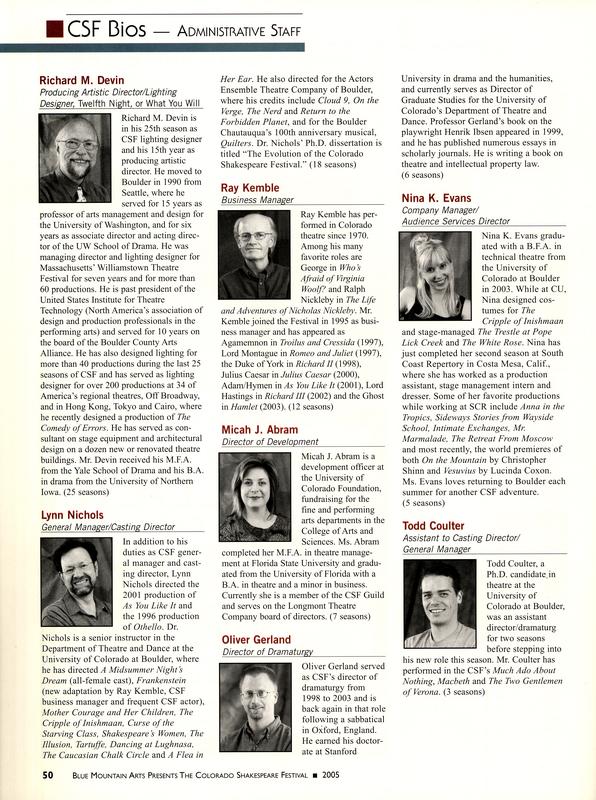 RightsArtifact © Colorado Shakespeare Festival [web site]