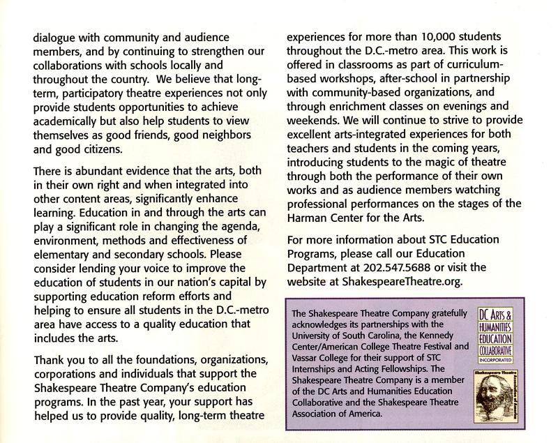 Rights | Artifact © Shakespeare Theatre Company [web site] |