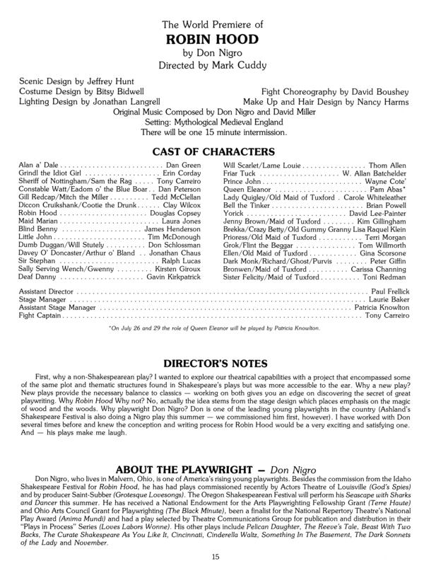Image nameRobin Hood - Cast, Crew, Notes and Playwright