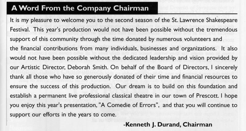 RightsArtifact © St. Lawrence Shakespeare Festival [web site]