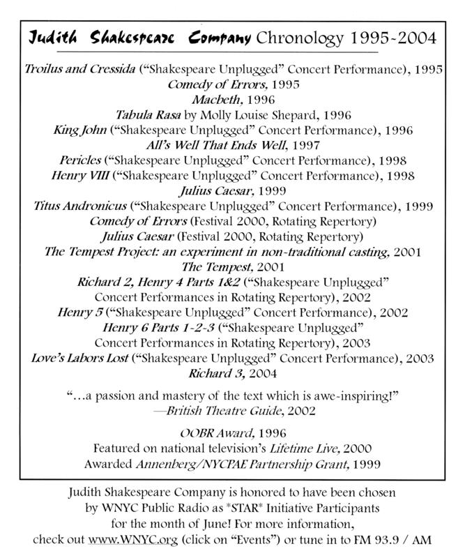 Image name | Judith Shakespeare Company Chronology 1995-2004 |