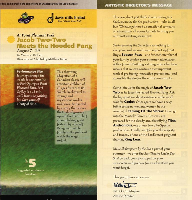 Image name<em>Jacob Two-Two</em> and Artistic Director's Message
