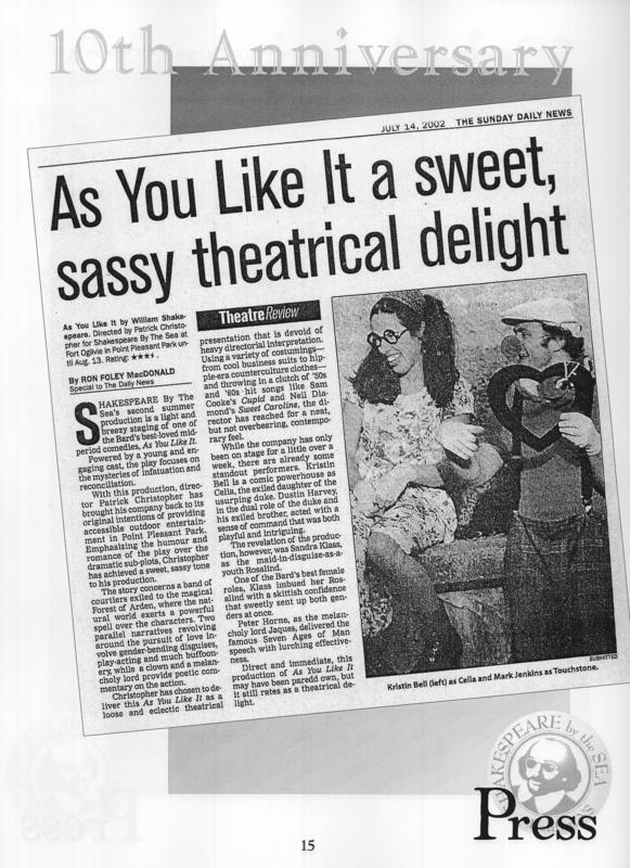 Image name | <em>The Sunday Daily News</em> Review: "As You Like It a sweet, sassy theatrical delight" (2002) |