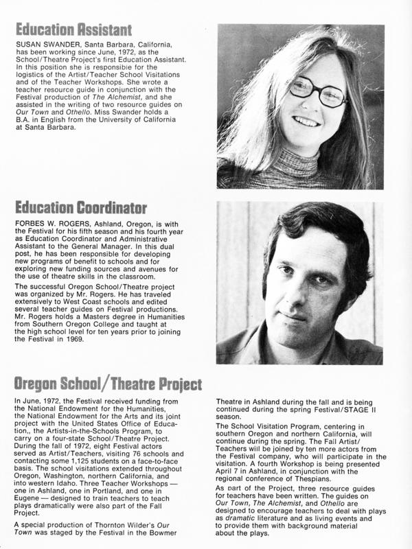 Image name | Education Assistant, Education Coordinator, Oregon School/Theatre Project |