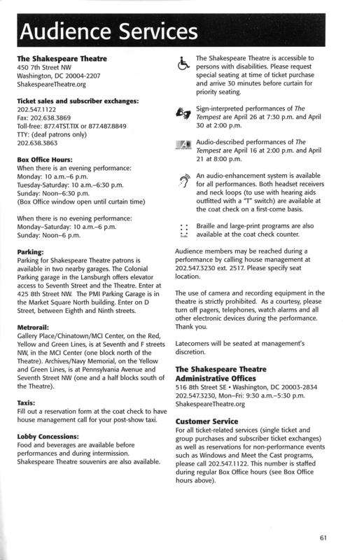 Rights | Artifact © The Shakespeare Theatre [web site] |