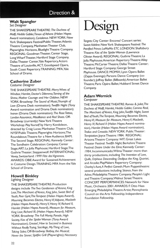 Rights | Artifact © The Shakespeare Theatre [web site] |