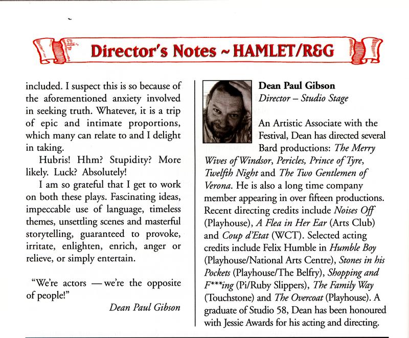Image name | Hamlet/Rosencrantz & Guildenstern: Director's Notes |