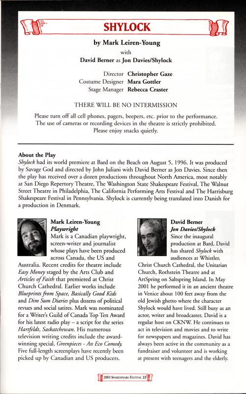 Rights | Artifact © Bard on the Beach [web site] |