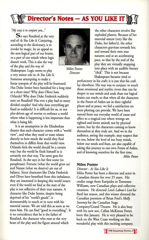 | Image name | As You Like It: Director's Notes |