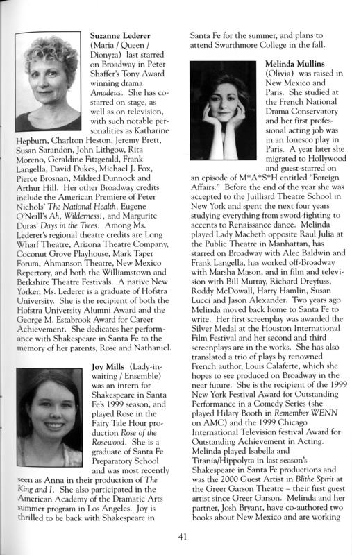 , Shakespeare in Santa Fe, 2001)