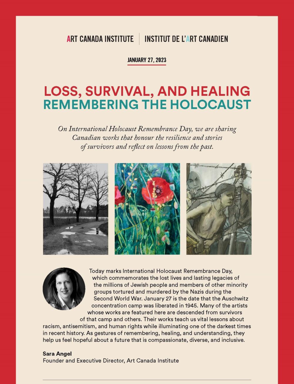 On International Holocaust Remembrance Day, the Art Institute of Canada’s newsletter focused on sharing Canadian works honouring the resilience and stories of survivors, and reflect on lessons from the past.