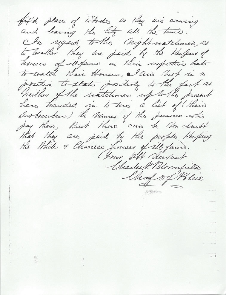 Bloomfield wrote: "in regard to the Houses of ill-fame in the city,