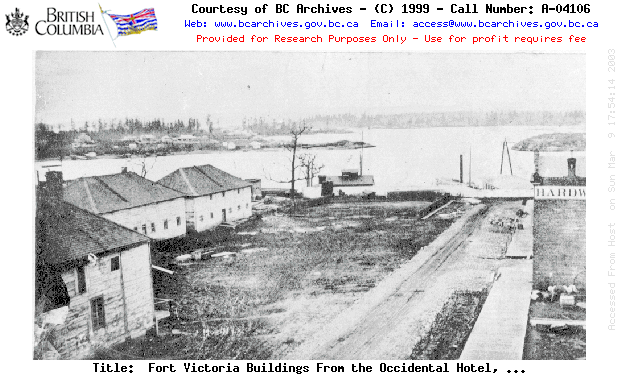 Historical Background Long prior to the establishment of the city of Victoria, the lands on which the city is currently located were occupied and home to the Lekwammen First Nations people. In 1843, in hopes of protecting British interests and slowing the increased encroachment of American settlement northward, the Hudson’s Bay Company established the Fort Victoria fur trading post. The Colony of Vancouver Island was established in 1849, and Victoria became the capital of the first British colony on the Western reaches of North America. The British government leased Vancouver Island to the Hudson's Bay Company for a minimal fee on the condition that the company would establish settlement in the colony within five years. Consequently, during these early years Victoria slowly grew up and developed around Fort Victoria and the fur trading company maintained a strong influence over the town. Ten years after the establishment of Fort Victoria, surveyors J.D. Pemberton and B.W. Pearse set out the Victoria town site. Small wooden shops and saloons slowly grew up around the fort. By 1858, the European population in Victoria was around 500 and the permanent winter population of the Lekwammen was approximately 700.3 With the discovery of gold on the mainland in 1858, the Colony of British Columbia was established to safeguard British interests. This year marked the end to the slow pace and development that had previously characterized Victoria. Hotels, saloons, chemists, and trading buildings sprang up at unprecedented rates. Around the same time, the Hudson's Bay Company lease on Vancouver Island expired, and James Douglas resigned from his position as chief factor of the company to assume the position as governor of both colonies. As a result of the gold rush, the city of Victoria changed immensely and witnessed a notable proliferation of development. Ten to twenty thousand people flooded into the city in 1858 on their way to the mainland. The same year the number of permanent residents in the town increased from a few hundred to 6000.4 The town experienced difficulties in accommodating this huge influx of people and struggled to provide them with sufficient accommodation, food, and administration. In attempts to meet the demand, 225 buildings were constructed in six weeks during the summer of 1858.5 While the gold was located on the mainland, Victoria greatly benefitted from the gold rush as the city remained the main supply locale for prospectors on route to make it rich. The gold rush served to infuse Victoria’s economy with capital, which resulted in the construction of new buildings, improved communications, a rise in land values, and an increase in investment. To further improve and ensure the economic viability of the city, Victoria was declared a free port in 1860. The quick growth of the commercial district along Wharf Street was a clear indication of the success of free trade. The buildings constructed during this period are the oldest masonry buildings in Victoria, and possibly in Western Canada.6 Victoria was incorporated as a city in
